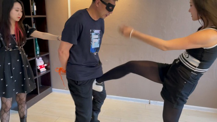两个美女闺蜜早期的作品,讲述色狼猥琐两姐妹入室打算侵犯,不料反被二人踢废惩罚的过程。厚黑美学的丝袜和网袜的双重刺激下,下体被反复的踢打,感受下蛋碎的滋味吧。