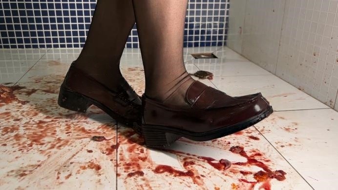 电影院黑色高跟鞋无意识踩手
