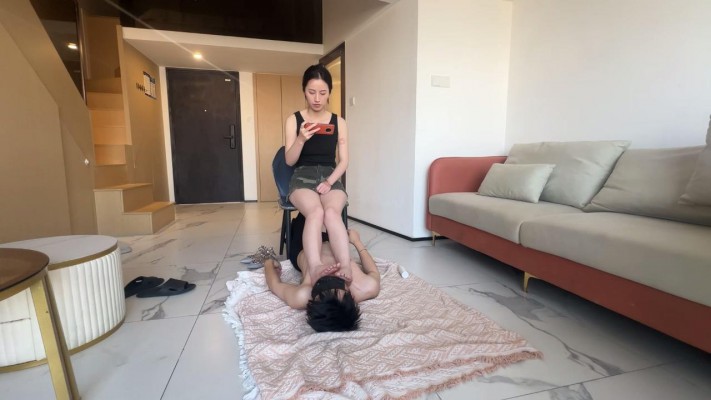 大二学生晓俞穿着华天奴的鞋子全体重踩踏狗奴,踩踏狗头,然后让奴舔自己的原味裸足脚丫子,再用脚丫子虐狗咪咪,视频原声对话哦